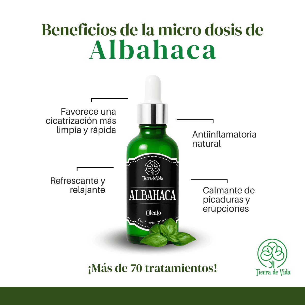 Oleato de Albahaca 30ml, marca Tierra de Vida.