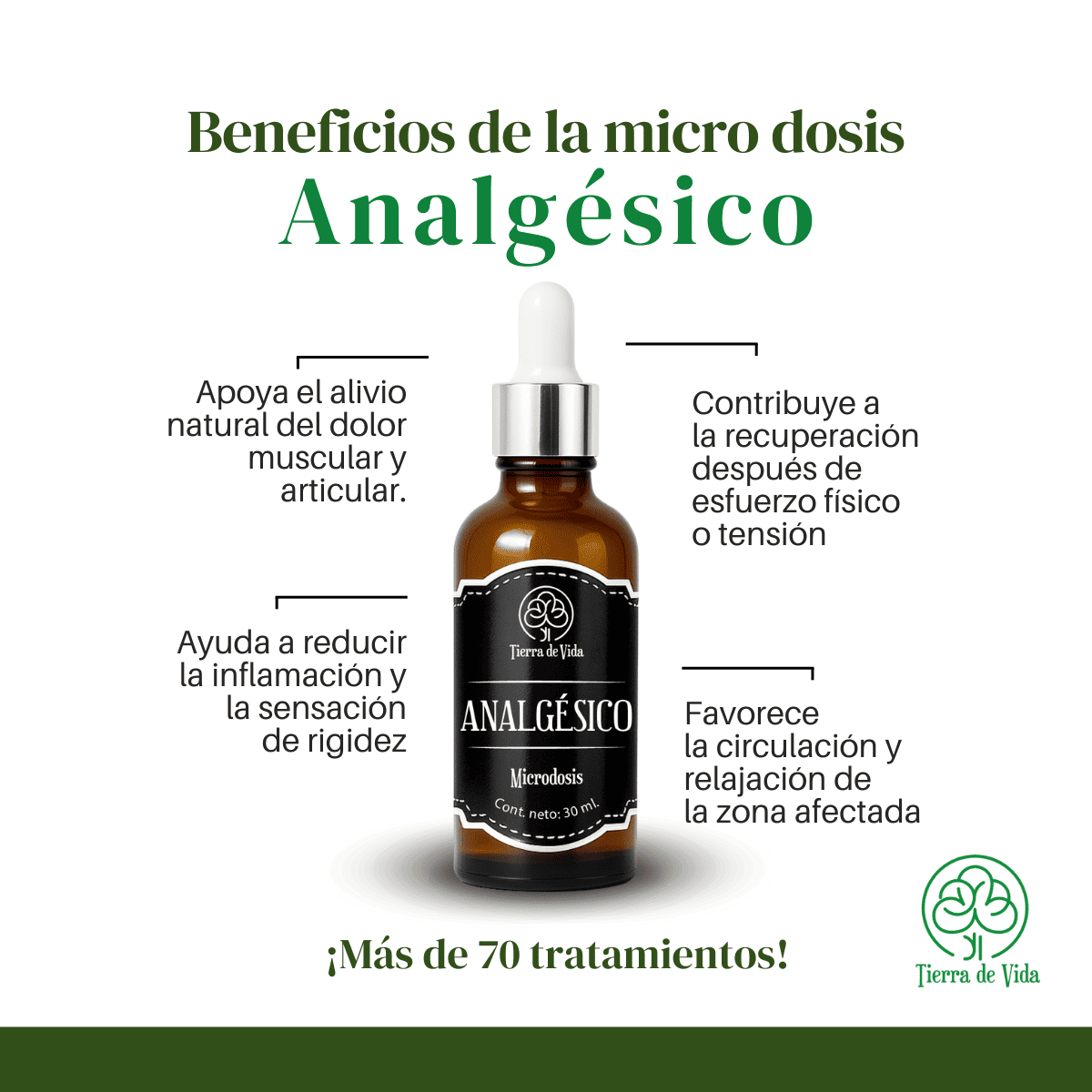 El Microdosis Analgésico Natural es una fórmula herbolaria concentrada diseñada para acompañar al cuerpo en momentos de dolor, inflamación o tensión física. Su combinación de extractos vegetales tradicionales actúa como apoyo natural para el bienestar muscular y articular.