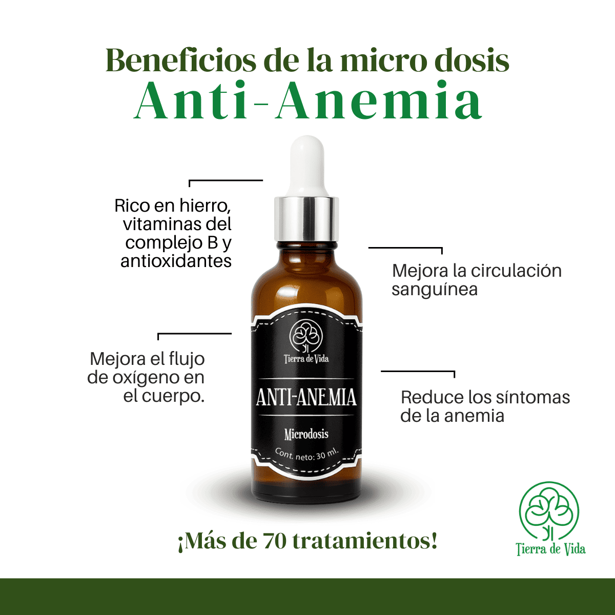 Este tratamiento esta elaborado con una mezcla de plantas especificas para combatir la anemia y sus síntomas. Marca Tierra de Vida.