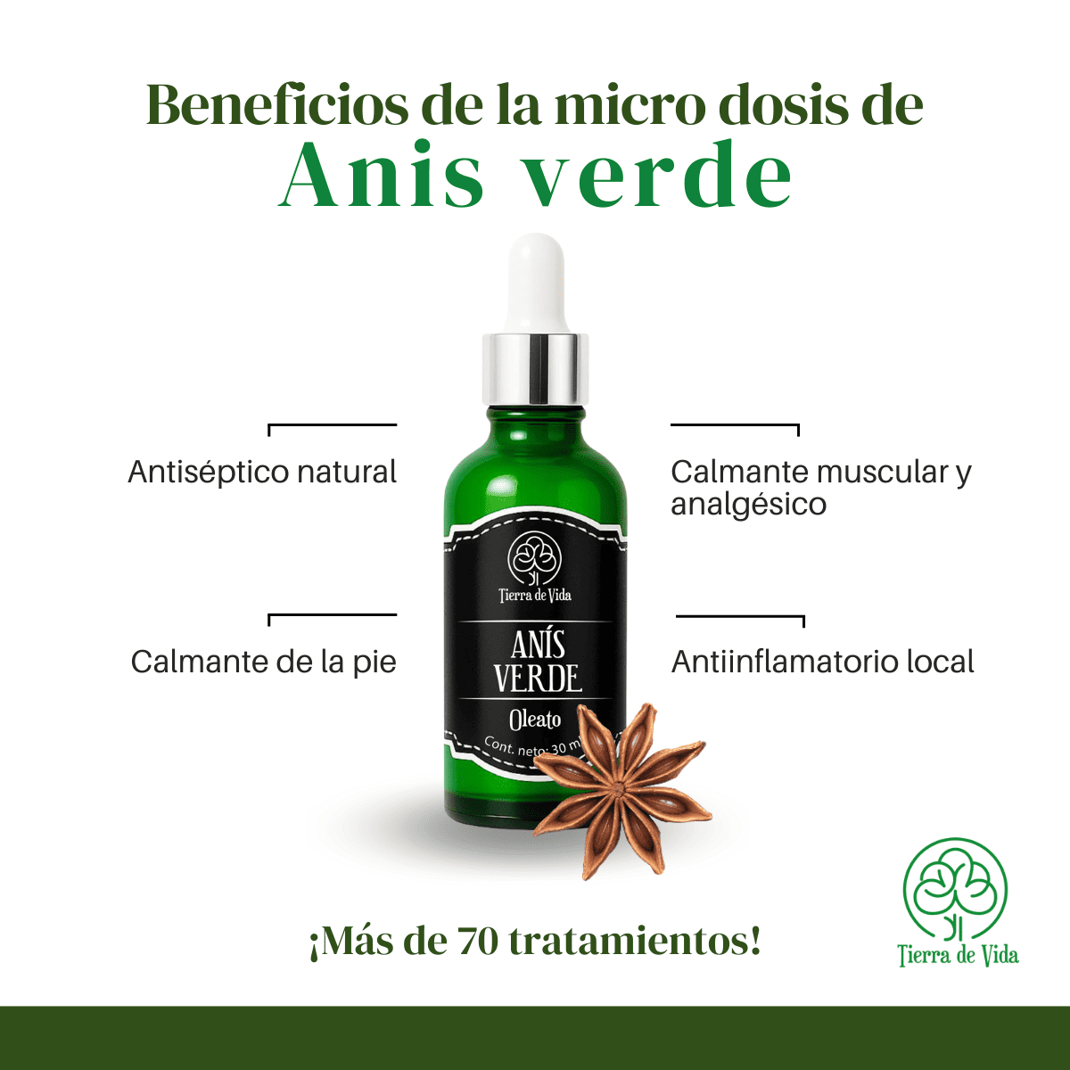 Oleato de Anís Verde 30 ml, marca Tierra de Vida.