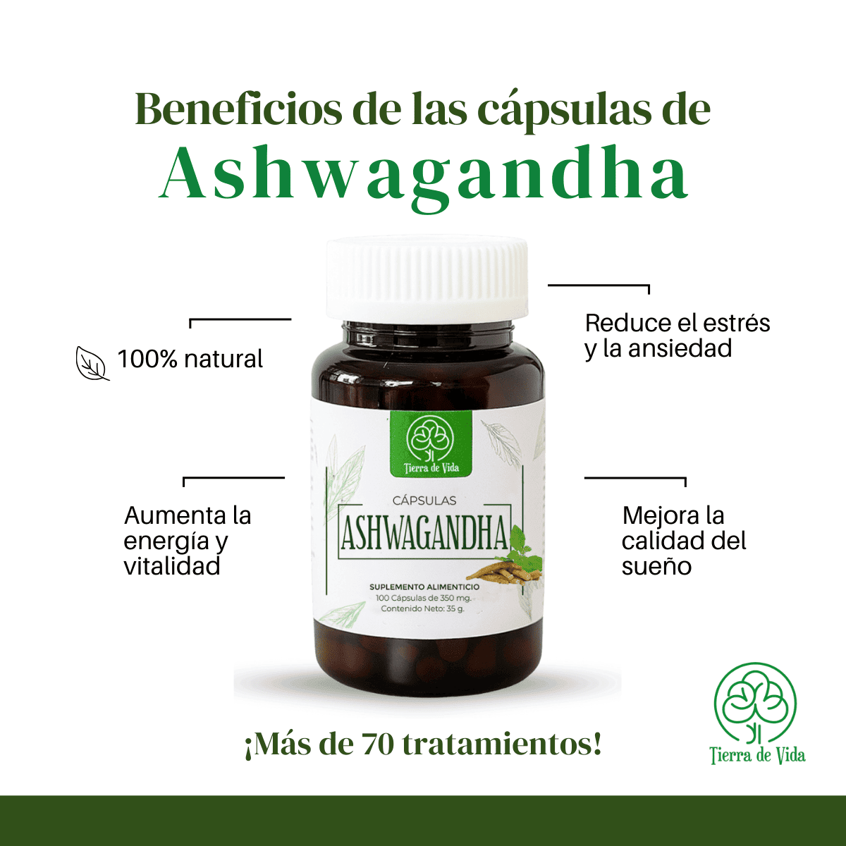 ¿Buscas un aliado natural para manejar el estrés y mejorar tu bienestar general? Nuestras cápsulas de ashwagandha están aquí para ayudarte. Este antiguo adaptógeno es conocido por sus múltiples beneficios para la salud, respaldados por siglos de uso tradicional y estudios modernos.