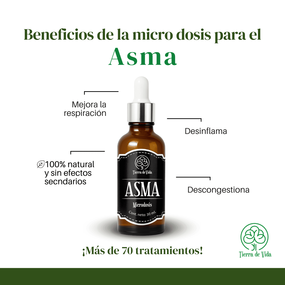 Tratamiento en microdosis de 30ml para el Asma, marca Tierra de Vida.