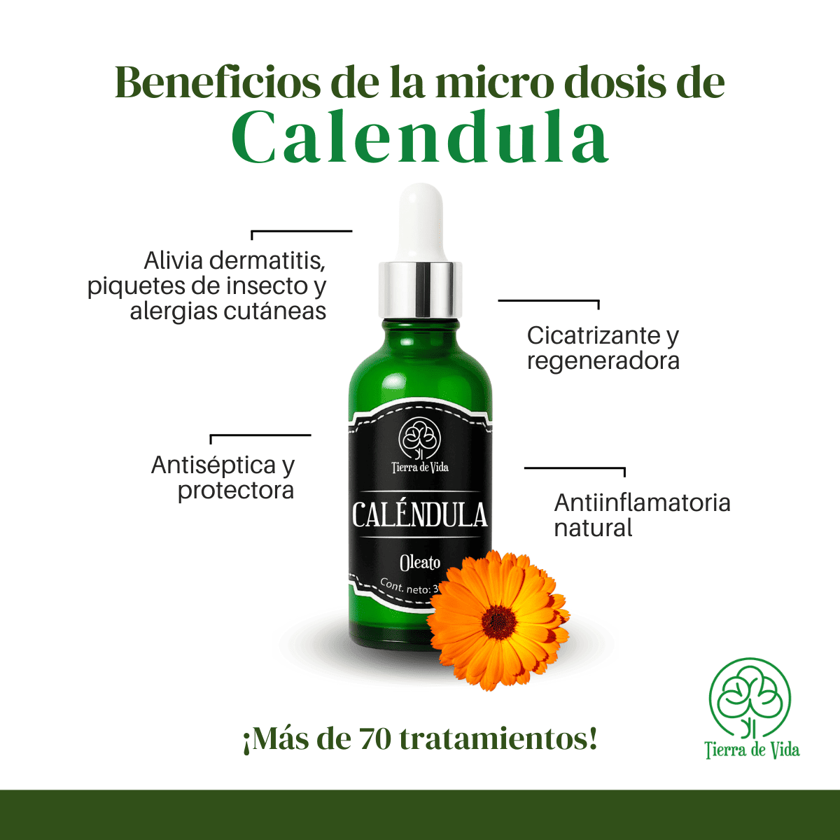 Oleato de Caléndula 30 ml, marca Tierra de Vida.