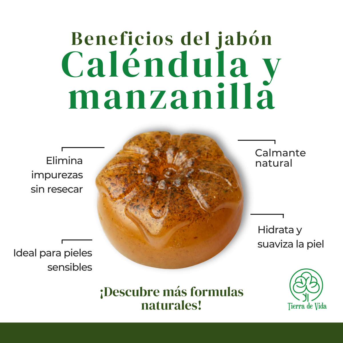 Déjate envolver por la delicadeza de nuestro Jabón de Caléndula y Manzanilla y transforma tu rutina diaria en un momento de puro bienestar y cuidado.