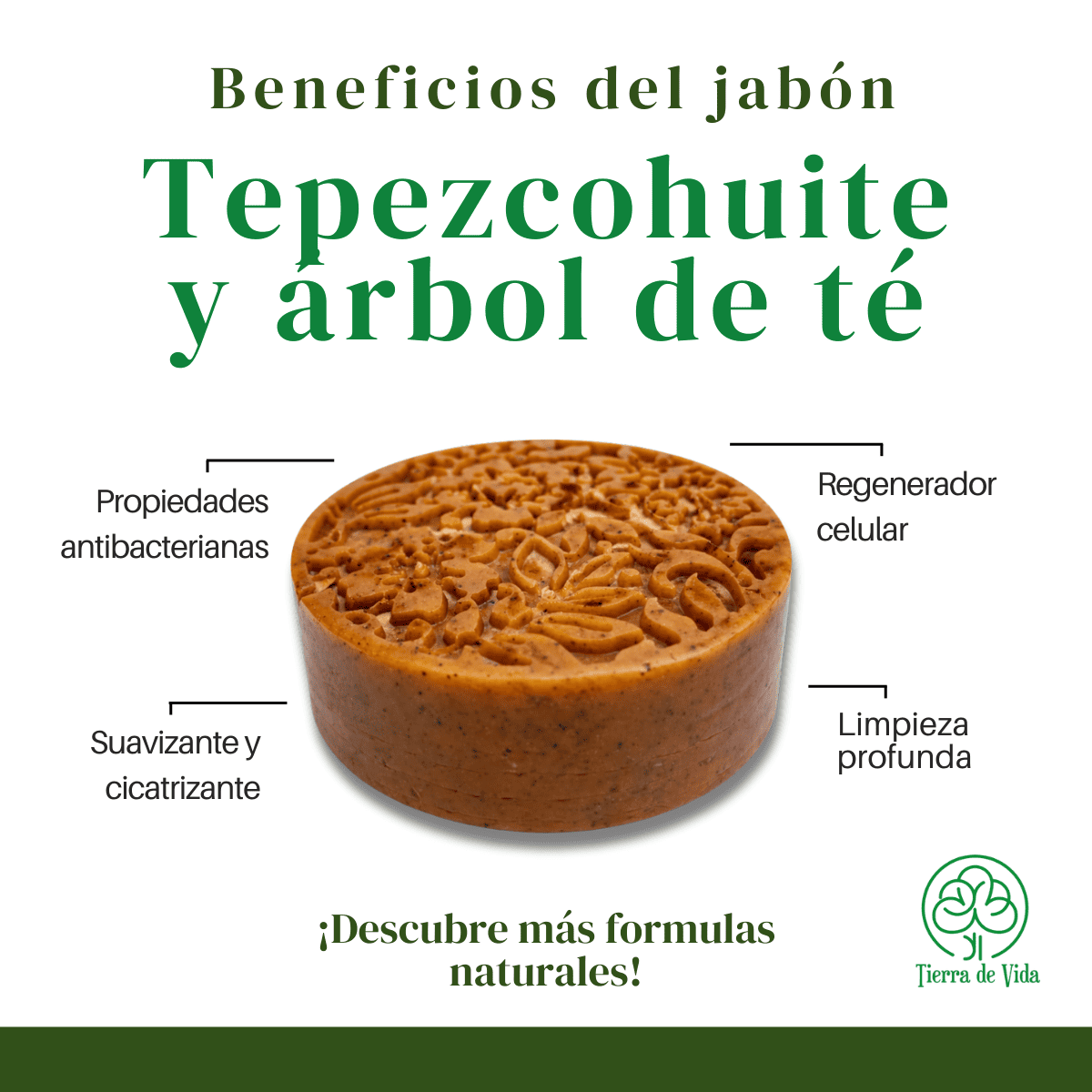 Revitaliza tu piel con nuestro Jabón de Tepezcohuite y Árbol de Té Tierra de Vida.