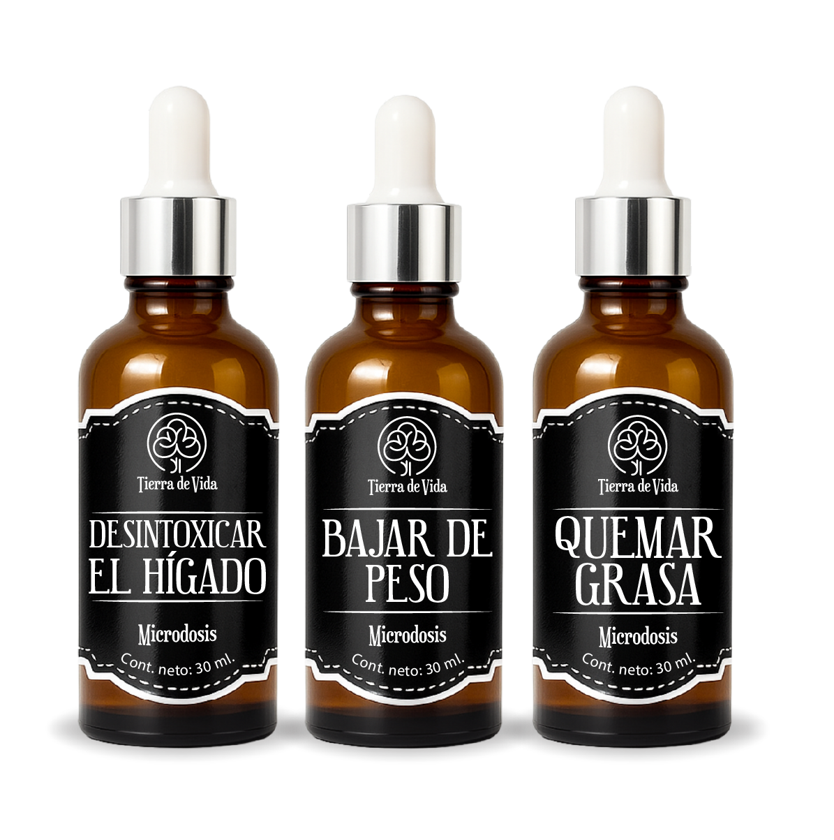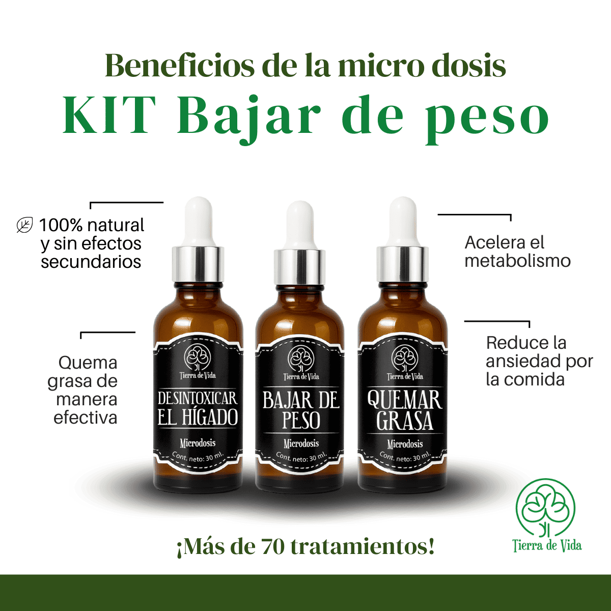 Tratamiento natural en microdosis de 30ml para Bajar de Peso Marca Tierra de Vida. Frasco gotero sellado.