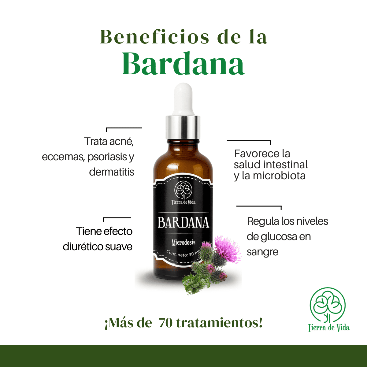 Microdosis de Bardana. extracto herbolario, frasco de 30 ml, marca Tierra de Vida.