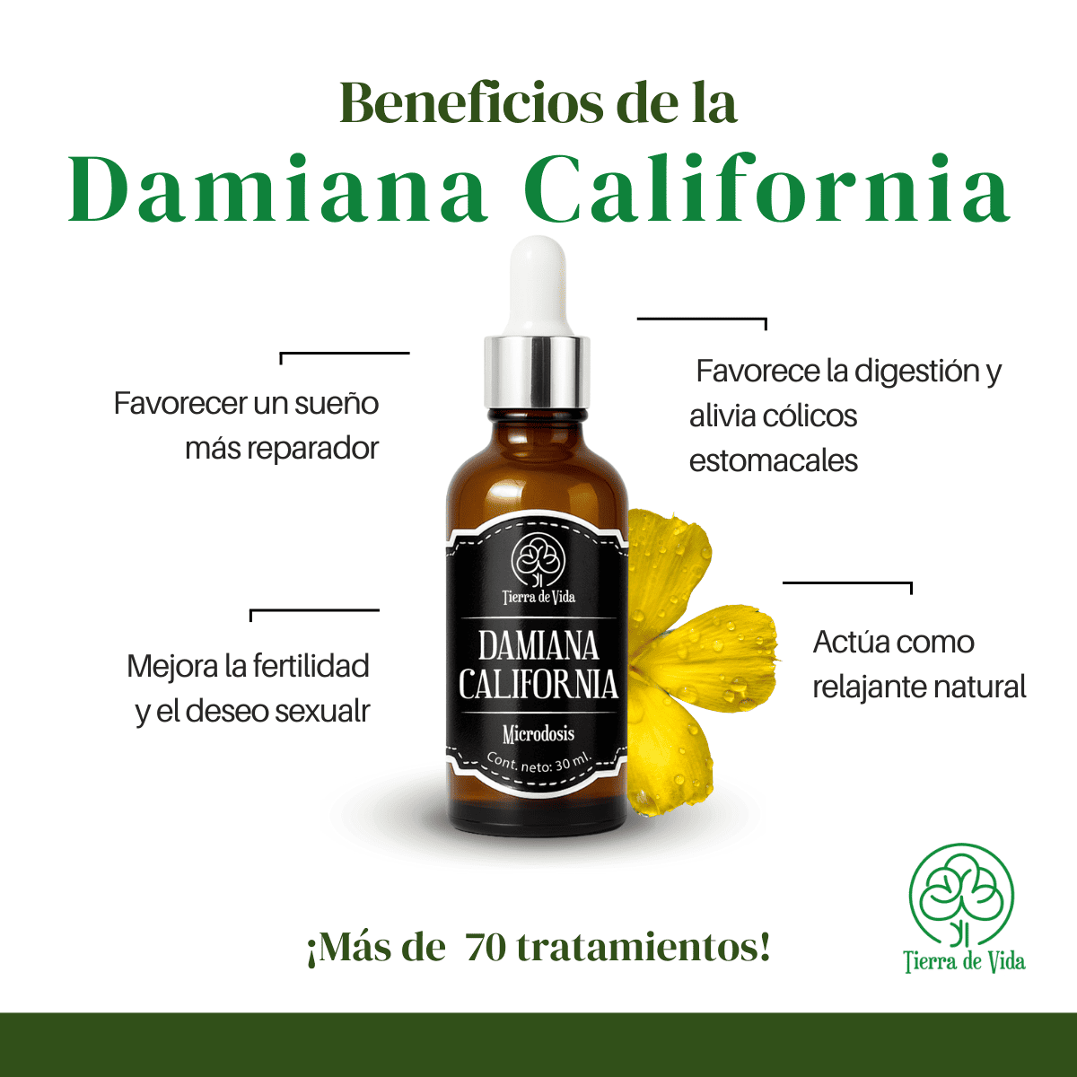 Microdosis de Damiana California 30 ml, marca Tierra de Vida.