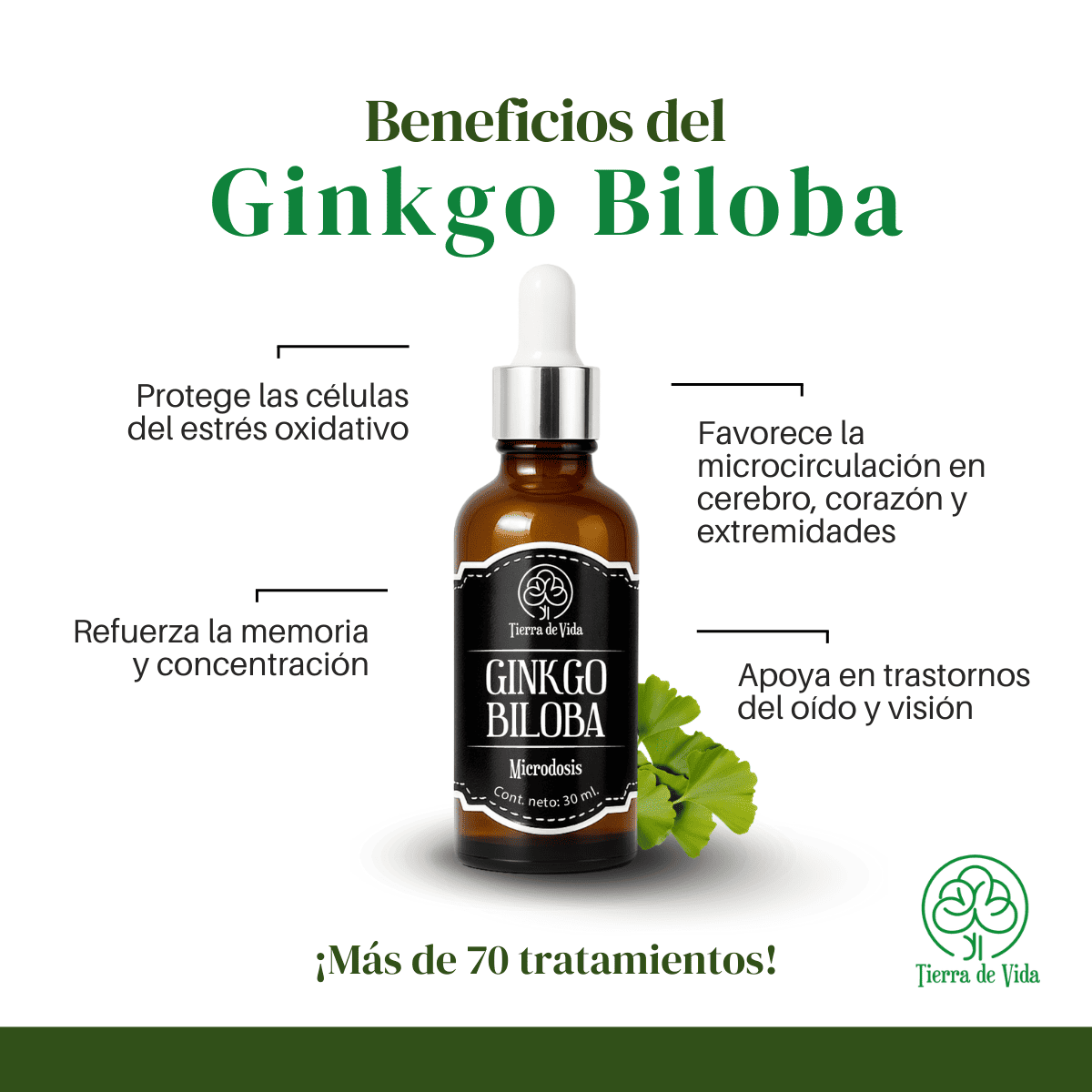 Microdosis de Ginkgo Biloba, marca Tierra de Vida.