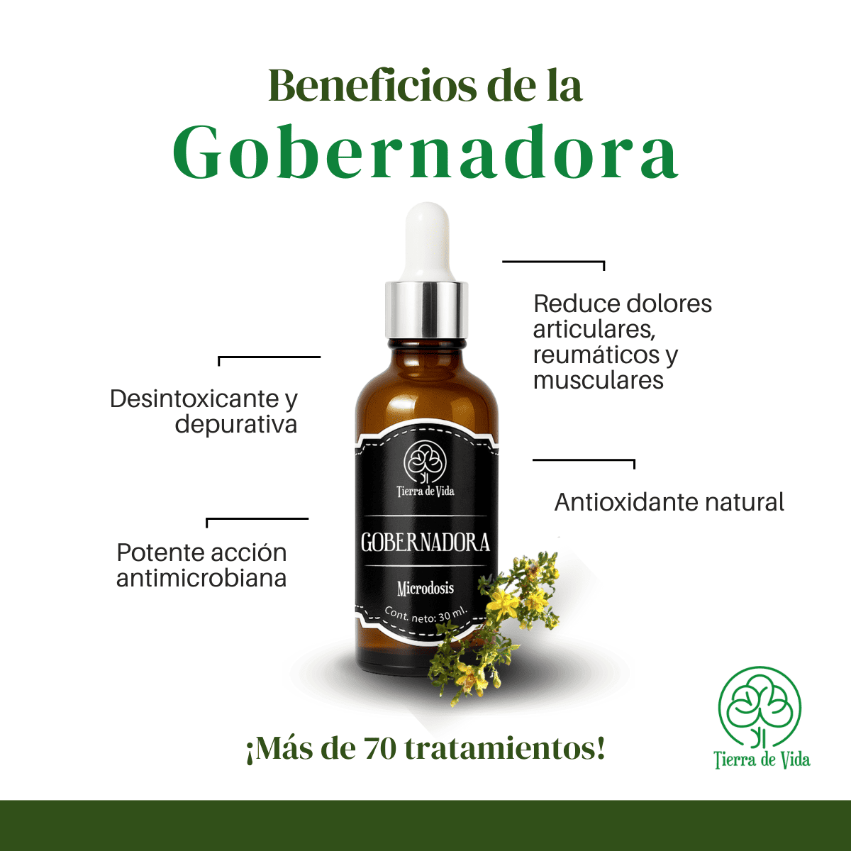 Microdosis de Gobernadora 30 ml, marca Tierra de Vida.