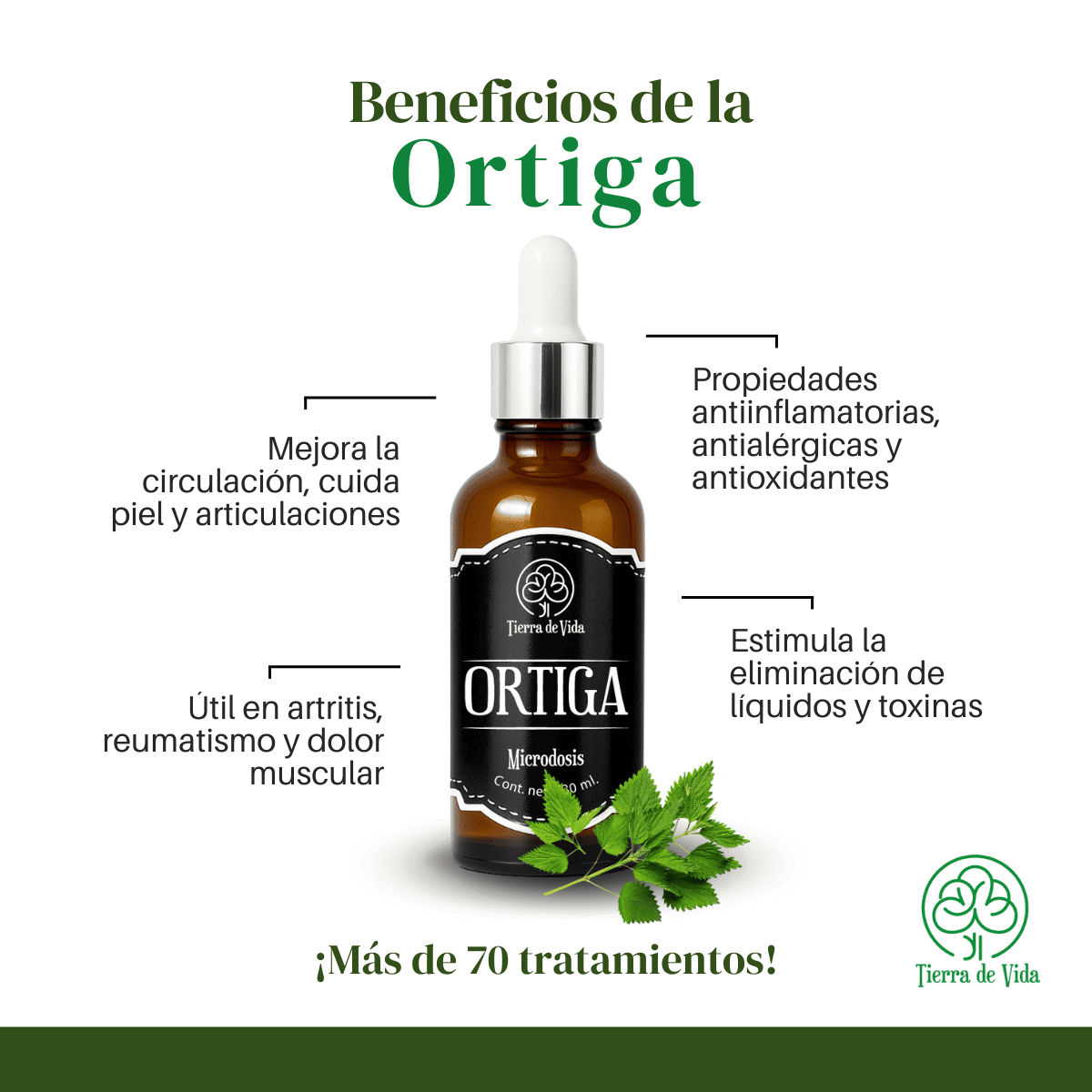 ¿Sabías que la ortiga es una de las plantas medicinales más antiguas del mundo? ¡Y por una buena razón! La ortiga es una de las plantas más completas que existen en la naturaleza, y ahora puedes disfrutar de sus beneficios en una microdosis fácil de tomar. Nuestra microdosis de ortiga es un complemento perfecto para cualquier persona que quiera mejorar su salud y bienestar de manera natural. La ortiga tiene propiedades antiinflamatorias, antioxidantes y antialérgicas, por lo que es excelente para tratar diversas afecciones como alergias, artritis, dolor articular y muscular, y problemas digestivos. Además, la ortiga también es conocida por su capacidad para fortalecer el sistema inmunológico, reducir la presión arterial, regular los niveles de glucosa en sangre y mejorar la circulación sanguínea. También se ha demostrado que la ortiga es efectiva para mejorar la salud de la piel, el cabello y las uñas.