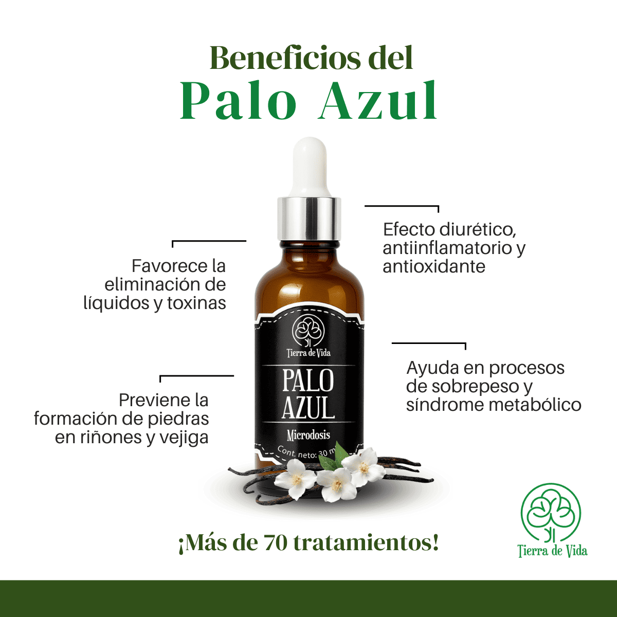 Microdosis de Palo Azul 30 ml, marca Tierra de Vida.