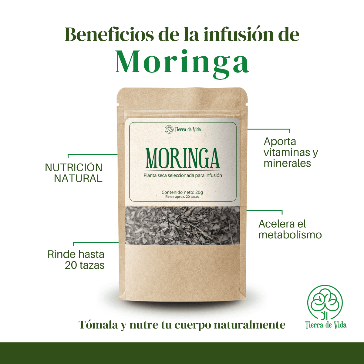 Moringa, planta para infusión, té, marca Tierra de Vida.
