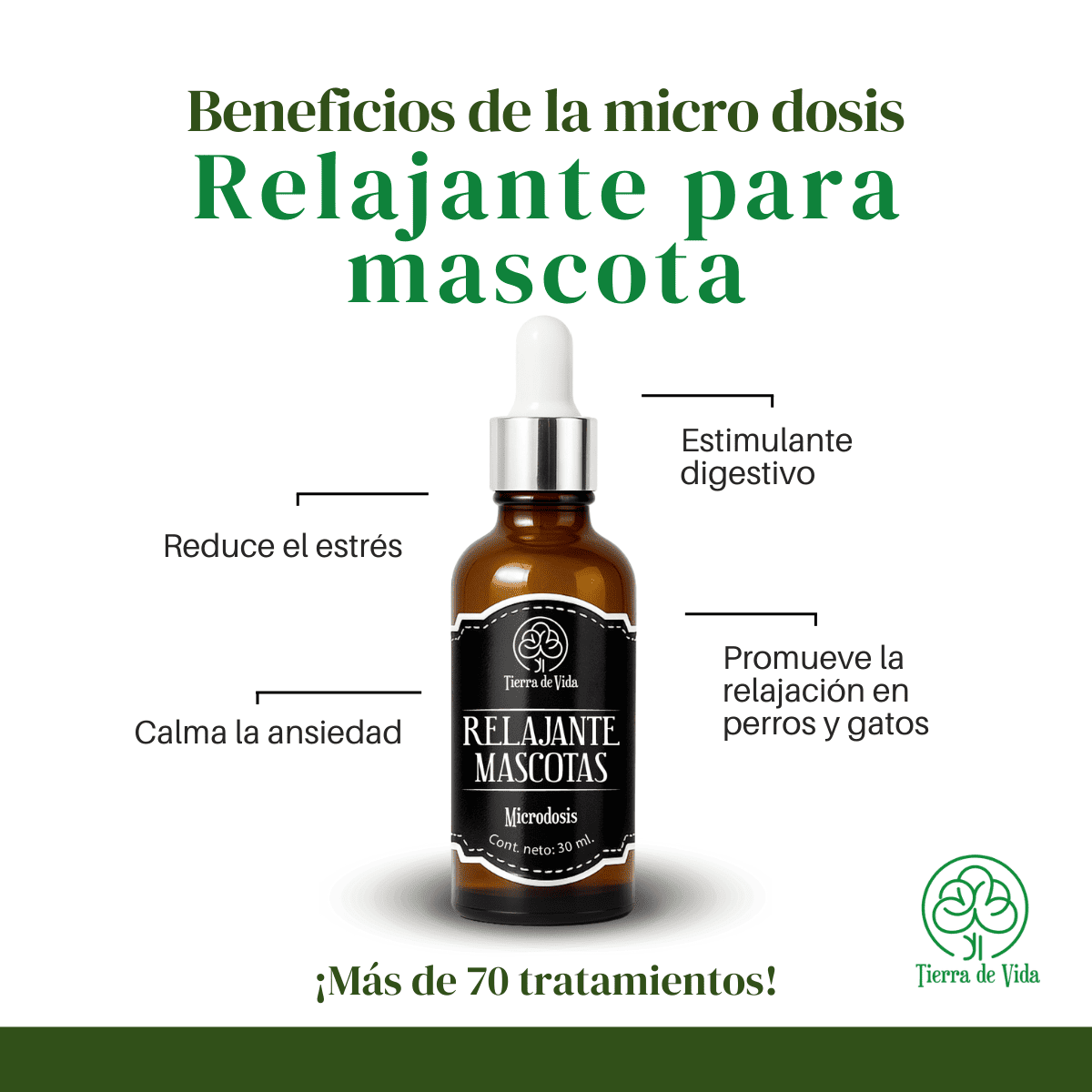 Tratamiento natural microdosis Relajante para Mascotas 30 ml, marca Tierra de Vida.