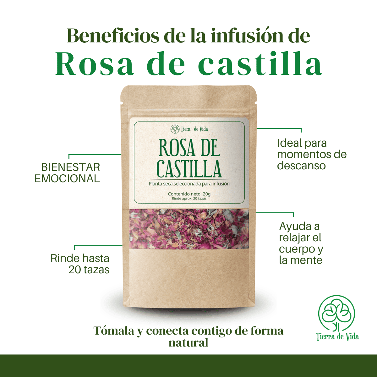 Rosa de Castilla, planta para infusión, té, marca Tierra de Vida.